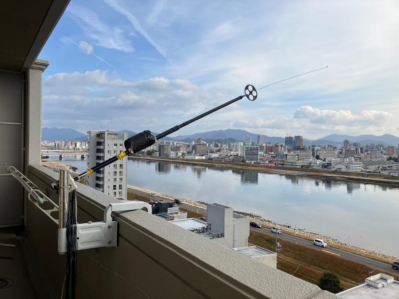 東向きのベランダにアルミ線を展開。160mヘリカルアンテナ(2025/12/31)