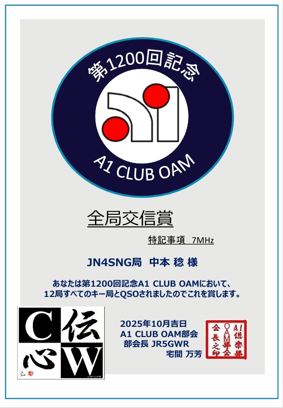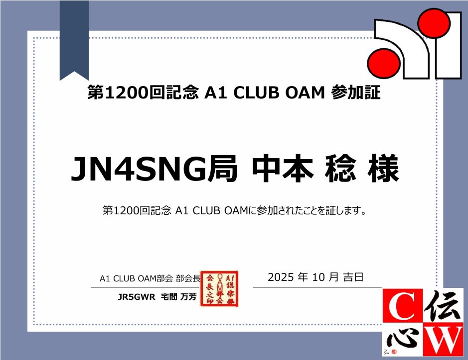 A1Club 第1200回OAMに参加しました。(2025/9/27)