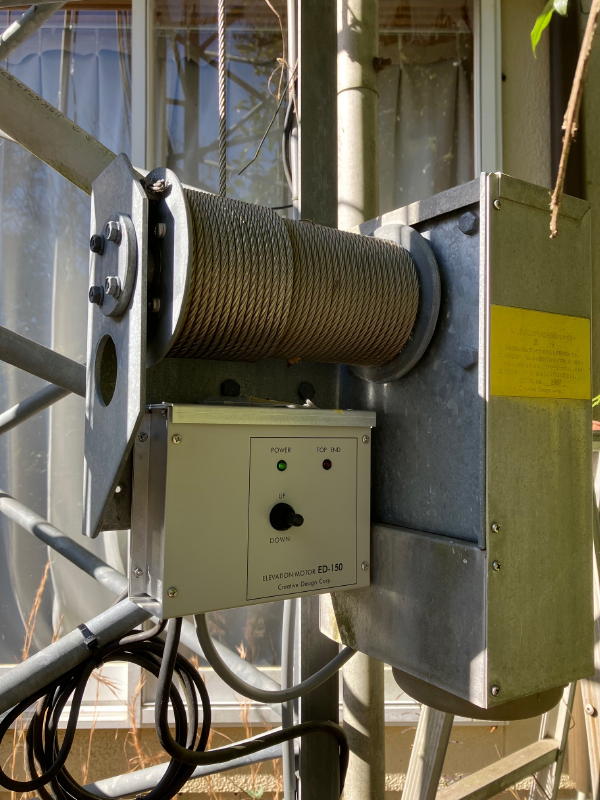 マストに設置。コネクターの接触不良で一旦下ろすも、22日に再度取り付け。ケーブルは整理されるが、アンテナは増える?(80mRDPと12mデルタループがスタンバイ中)