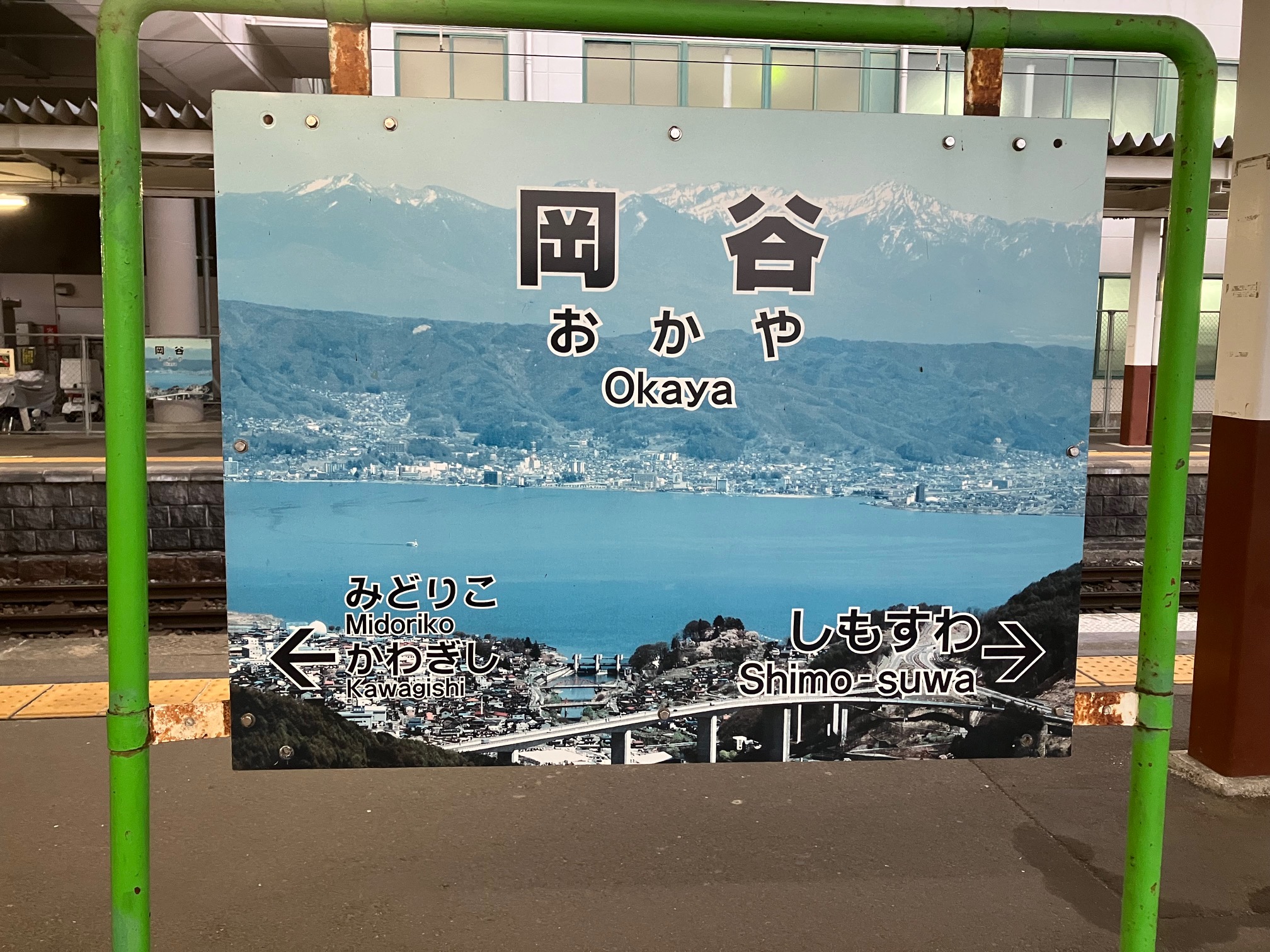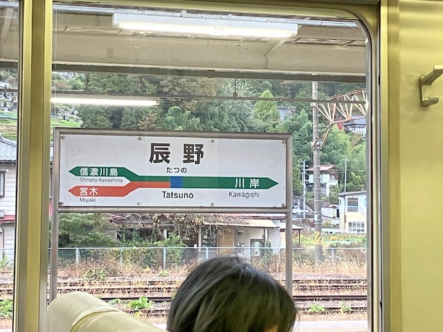 松川町、駒ケ根市、伊那市、箕輪村を通って、辰野駅。辰野と岡谷の間は単線。(昔の複線あとが残っていた)