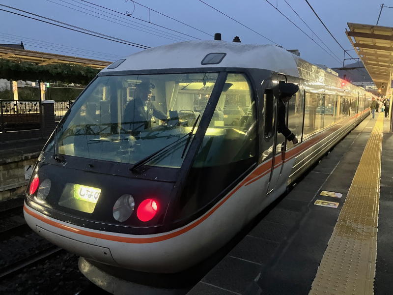 塩尻を出て木曽福島駅手前の山間(夜でよく見えない)でシカにぶつかったと、停止。10両編成の前から8両目なので衝撃なし。