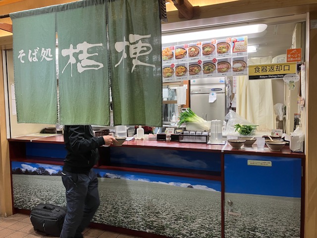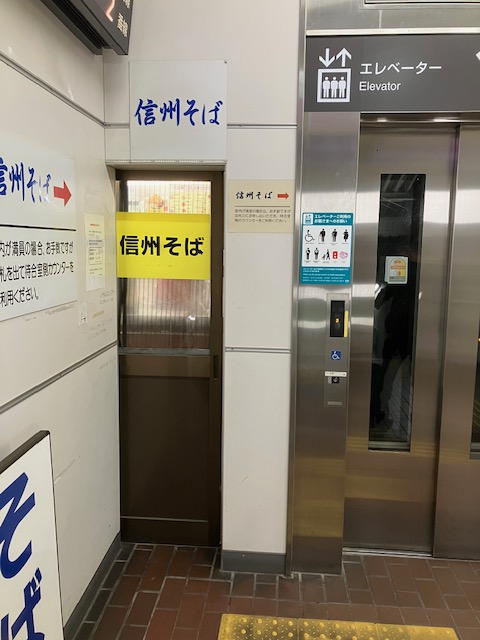 塩尻駅の改札の横には蕎麦屋。改札の外の待合からと、改札の内のエレベータ横からも店内に入る(もちろん店内では分けられている)